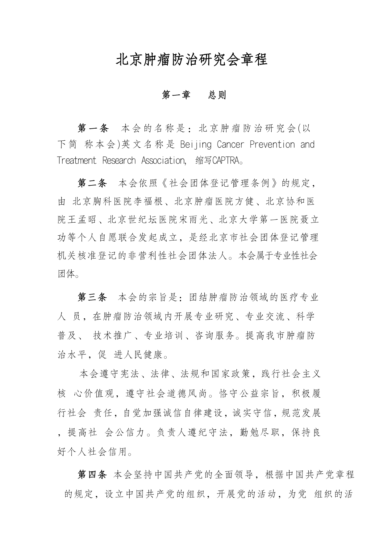 北京肿瘤防治研究会成立于2017年,由北京胸科医院李福根、北京肿瘤医院方健、北京协和医院王孟昭、北京世纪坛医院宋雨光、北京大学第一医院聂立功等个人自愿联合发起成立,是经北京市社会团体登记管理机关核准登记的非营利性社会团体法人。现任会长为北京大学第一医院的吴世凯,秘书长为北京世纪坛医院宋雨光。研究会自成立以来,致力于开展肿瘤学科的临床研究,举办肿瘤学术会议,推广肿瘤防治新成果、新技术。目前研究会在业内广受赞誉,已是北京乃至全国深具影响力的学术专业社团。